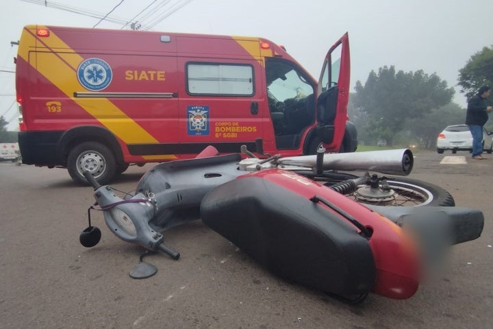 Um homem de 49 anos que conduzia um veículo Chevrolet Onix colidiu contra uma Honda Biz pilotada por uma mulher de 49 anos, na manhã desta terça-feira (18), em Umuarama. A motociclista teve escoriações leves e foi encaminhada para o Pronto Atendimento (PA).