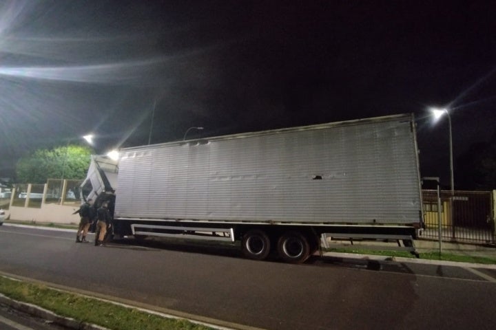 De acordo com nota à imprensa divulgada pelo 25º BPM, uma equipe da Rotam recebeu informações da Polícia Federal (PF) sobre um caminhão que teria acabado de estacionar dentro de um galpão e que poderia estar carregado com cigarros contrabandeados do Paraguai, além de possivelmente possuir alerta de furto/roubo.
