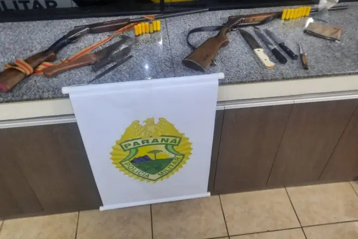 Conforme a PRF, ao ser abordado, o motorista não obedeceu a ordem de parada e foi necessário um acompanhamento tático. Após conseguir para o veículo, os policiais localizaram as espingardas e uma cartucheira com calibre 20 carregados no mesmo calibre, além de sete facas.