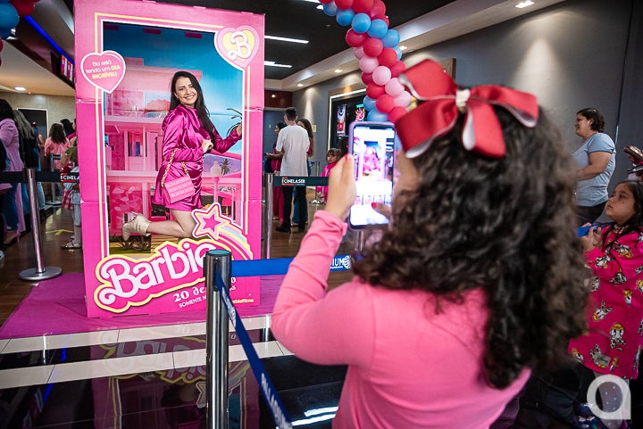O cinema está decorado com temas da Barbie, locais para fotos e oferta um balde de pipoca que vira a bolsa da personagem. Ingressos para sessões do final de semana ainda disponíveis na bilheteria física do cinema ou no site: www.lasercinemas.com.br.