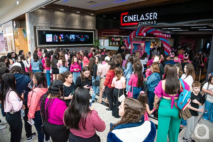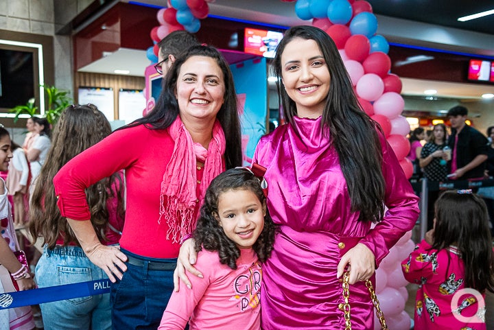 Barbie estreia com muitos fãs vestindo rosa no cinema do Shopping Palladium de Umuarama