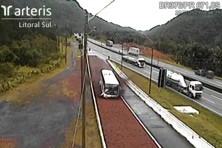 Conforme a concessionária, o ônibus de turismo levava 29 de jovens de Curitiba para Guaratuba, quando o motorista percebeu uma falha no sistema de freios. Como já conhecia o dispositivo, fez uso da área de escape, evitando assim um acidente que poderia ser fatal.