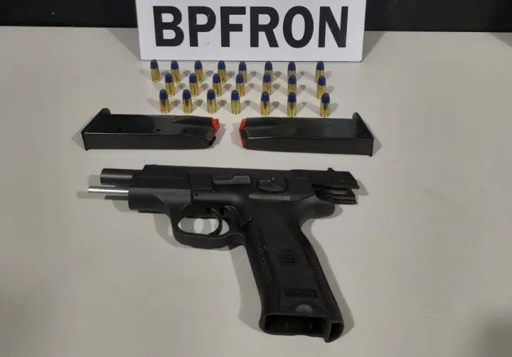 O BPFron encontrou no interior do carro uma mala onde estava uma pistola Sarsilmaz B6 cal. 9mm, 2 carregadores e 22 munições do mesmo calibre. Diante dos fatos foi dada voz de prisão ao responsável pela arma, que foi conduzido para a delegacia de Cianorte.