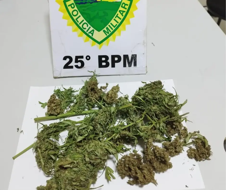 Após busca no quarto do homem, foram localizados 67 gramas de maconha em feixes da planta ainda em estado verde, o que indicava que a colheita havia sido recente. O indivíduo afirmou que cultivava a droga para uso pessoal, dado seu vício.
