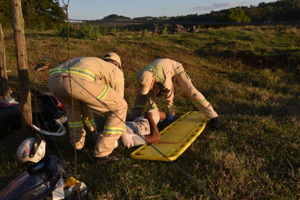No momento em que a ocorrência era concluída, os bombeiros foram acionados para se locomoverem cerca de um quilômetro à frente. Um homem de 35 anos perdeu o controle da Honda/Bis que conduzia e bateu em uma cerca. Ele teve várias escoriações pelo corpo e, a princípio, fratura no nariz. Também foi encaminhado para atendimento médico no hospital.