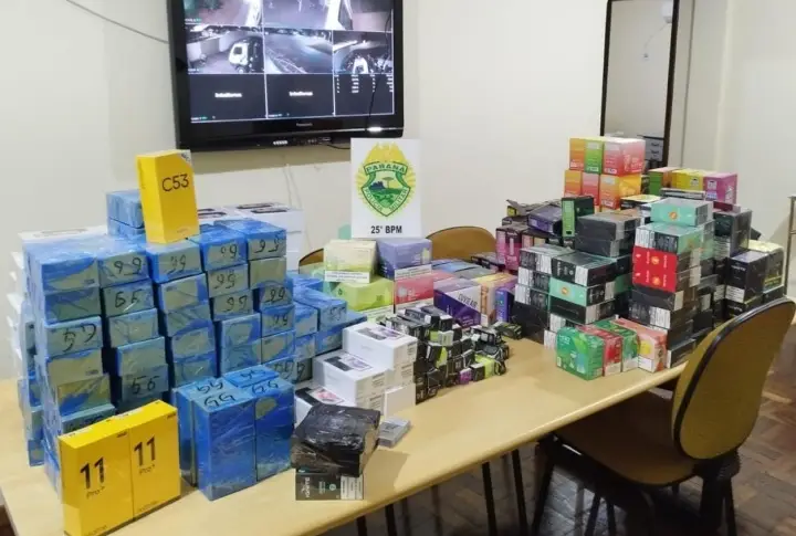 Posteriormente os policiais encaminharam o veículo e as mercadorias, 161 celulares e 1600 cigarros eletrônicos, à Receita Federal de Guaíra.