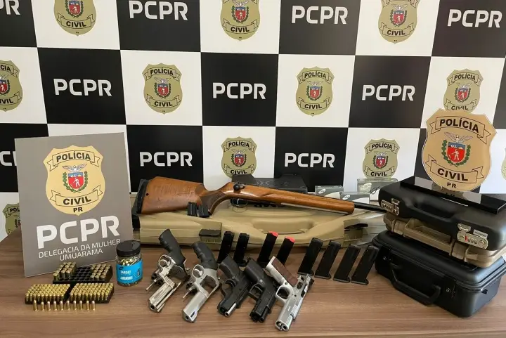 Na manhã desta terça-feira (25) a Polícia Civil de Umuarama, através da equipe da Delegacia da Mulher, apreendeu 6 armas de fogo e 440 munições em posse de um homem de 45 anos. A apreensão aconteceu em um edifício residencial situado no centro da cidade. As informações foram divulgadas pela Delegacia da Mulher.