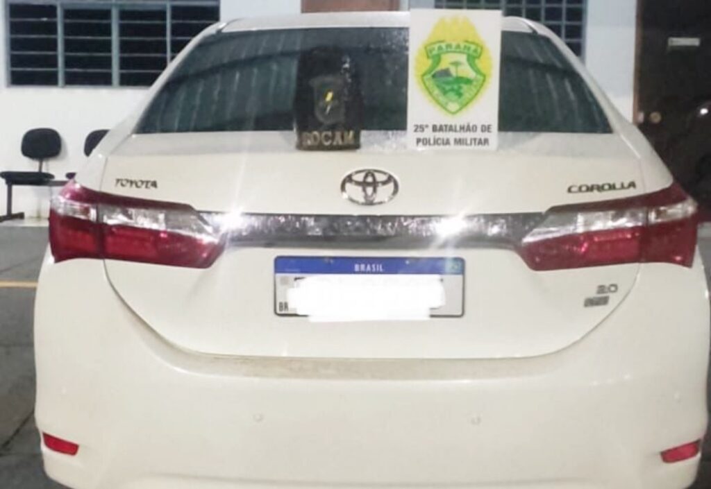 Pouco tempo depois a PM conseguiu recuperar o carro no Parque Industrial. Os policiais estavam fazendo patrulhamentos quando, por volta das 21h, viram o Corolla estacionado no pátio de um estabelecimento comercial (loja de varejo) às margens da Rodovia PR-323.