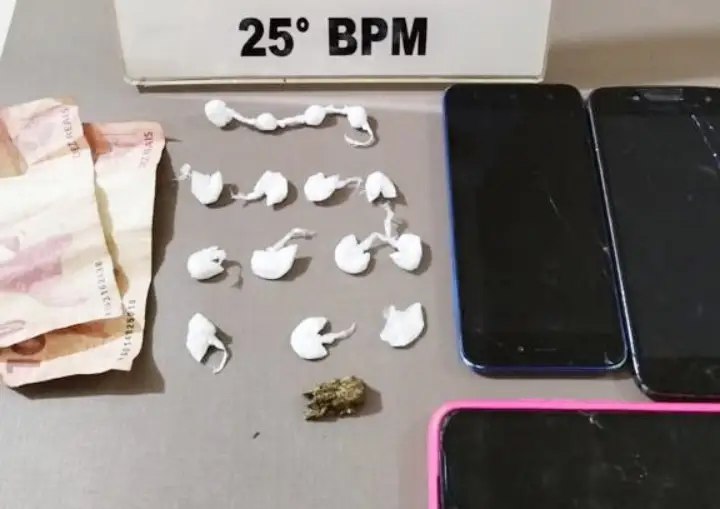 As equipes realizam patrulhamentos constantes e conseguiram ver os suspeitos na frente do imóvel. Desta forma, os PMs fizeram a abordagem. Durante busca pessoal foi encontrado com homem de 21 anos a quantia de 14 buchas de cocaína (que totalizaram 5 gramas). Com o outro suspeito não foi encontrado nada.