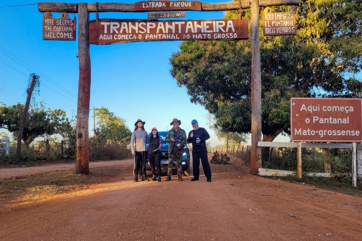 Os exploradores relataram que percorreram 6 horas pela estrada transpantaneira que tem 147 km e passa por 120 pontes, a maioria delas ainda de madeira, até chegar ao ponto de embarque dos barcos. Durante a manhã eles navegaram por horas procurando por animais, mas o objetivo principal era avistar onças.
