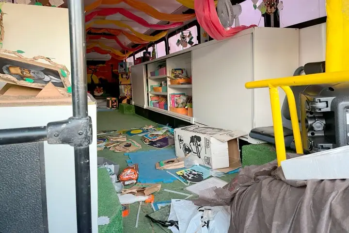 “Imaginamos que quem praticou esse crime não estava sozinho, pois o estrago indica que mais gente tenha participado da ação. Eles levaram parte da decoração, que demoramos mais de três meses para confeccionar à mão, com destaque para os quatro fantoches, personagens que são os destaques nas apresentações culturais e teatrais. Eles também tentaram levar uma caixa acústica, usada pra contação de histórias, mas não passou pelo espaço do vidro quebrado”, relata a professora e escritora Angela Russi, idealizadora e realizadora do projeto”.