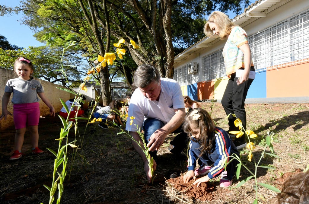O estabelecimento de ensino foi escolhido por ser o maior de Umuarama, em número de alunos – são cerca de 600, de acordo com a diretora Cleudimar Rissato –, e também por contar com espaço adequado. O prefeito Pozzobom e os alunos plantaram cerca de 40 mudas.