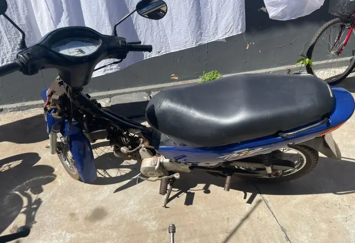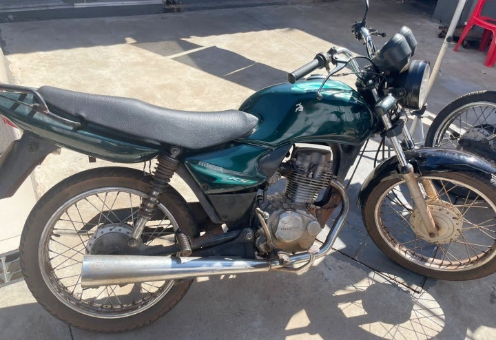 Durante patrulhamento pela área central da cidade os policiais viram uma motocicleta Honda/CG 125 de cor verde e uma motoneta Honda/Biz 100 azul estacionadas em frente a uma oficina mecânica.