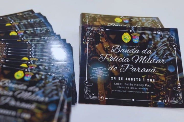 Já estão disponíveis para retirada os Ingressos da Apresentação da Banda da Polícia Militar que ocorrerá no dia 24 de agosto, às 20h, no Salão Halley Paz, na cidade de Cruzeiro do Oeste. O evento irá levantar alimentos que serão doados para o hospital Uopeccan, em Umuarama.