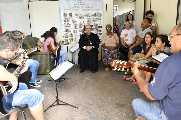 O bispo Dom João Mamede Filho está realizando visitas pastorais para celebrar os 50 anos da Diocese de Umuarama. Nesta segunda-feira (7), o encontro ocorreu na Associação Vida e Solidariedade também conhecida como ‘Dona Maria da Sopa’ onde foi recebido pelos alunos do projeto ‘Violão no Bairro’, coordenado pela Fundação Cultural de Umuarama.