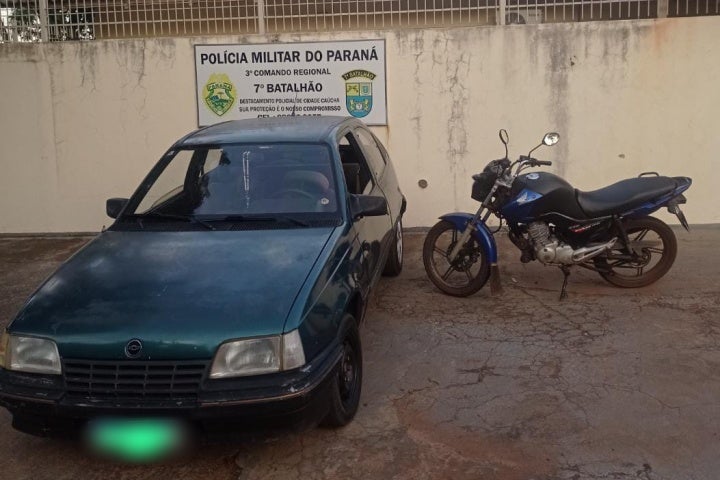 Ao fim, a motocicleta, o automóvel e os dois suspeitos foram encaminhados para a Delegacia de Polícia Civil de Cidade Gaúcha.