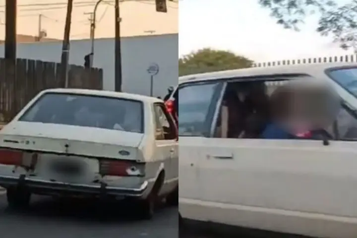 Além do transporte irregular, as imagens mostra que o veículo também está com o porta-malas defeituoso, sendo prendido com um fio ou algum tipo de arame.