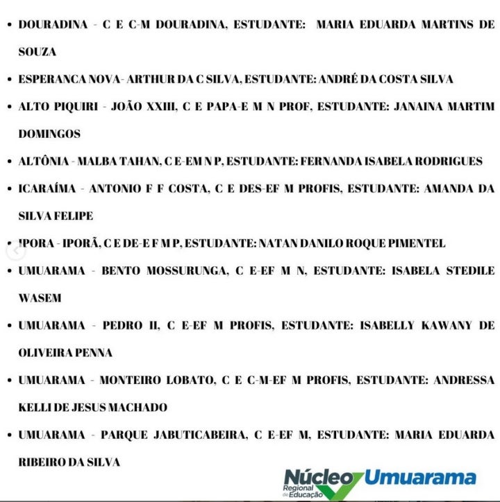 O Núcleo Regional de Educação (NRE) anunciou as quatro alunas de Umuarama selecionadas na segunda lista de convocados para o […]