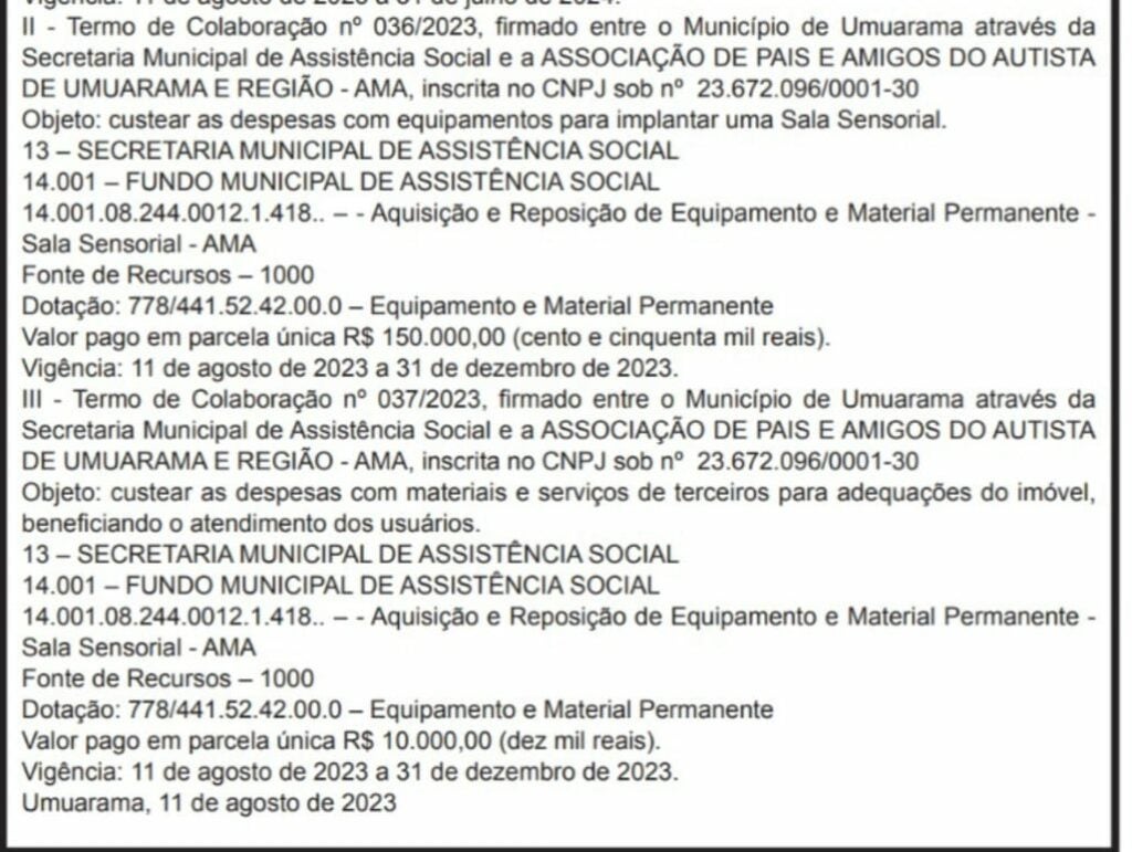 A AMA (Associação de Pais e Amigos dos Autistas de Umuarama e Região) deverá receber em breve dois recursos importantes para a instituição, que atende atualmente 108 alunos do espectro autista. Os recursos foram viabilizados através de emendas impositivas ao orçamento e publicados no Diário Oficial do município no último dia 11 de agosto.