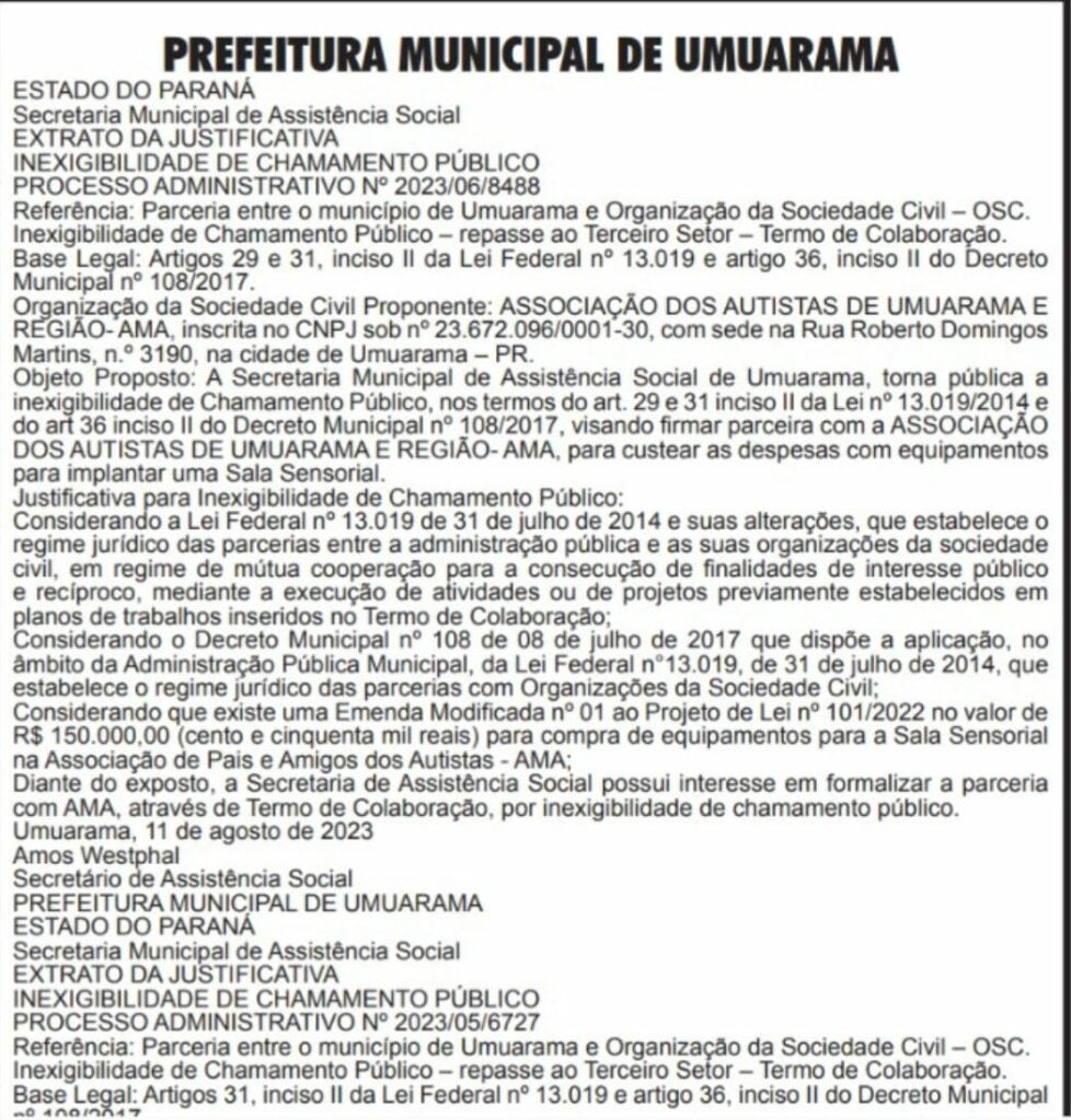 “Estou muito feliz. Os termos de colaboração foram firmados entre o município com a AMA, que se refere ao recurso da emenda Modificativa 01, que foi feita no Projeto de Lei 101/2022, (Lei Orçamentária – LOA) para o custeio das despesas com equipamentos para implantar uma Sala Sensorial na Associação de Pais e Amigos do Autista de Umuarama e Região”, escreveu a vereadora Ana Novais em uma publicação em suas redes sociais.