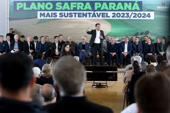 O governador Carlos Massa Ratinho Junior apresentou nesta terça-feira (15) o cardápio do Plano Safra 2023/2024 para agricultores, empresários e entidades do setor no Paraná. São R$ 54,3 bilhões captados de diversas fontes, entre elas o Banco do Brasil, cooperativas de crédito e o Banco Regional de Desenvolvimento do Extremo Sul (BRDE).