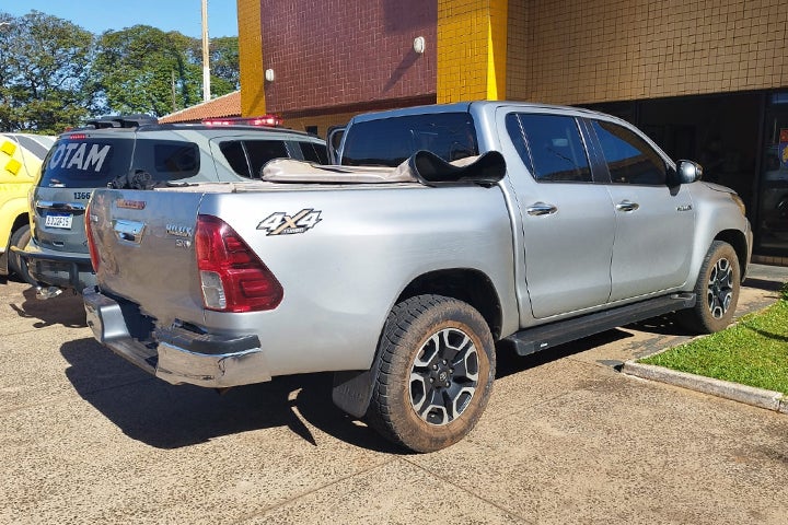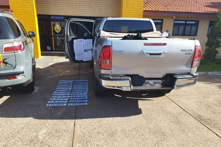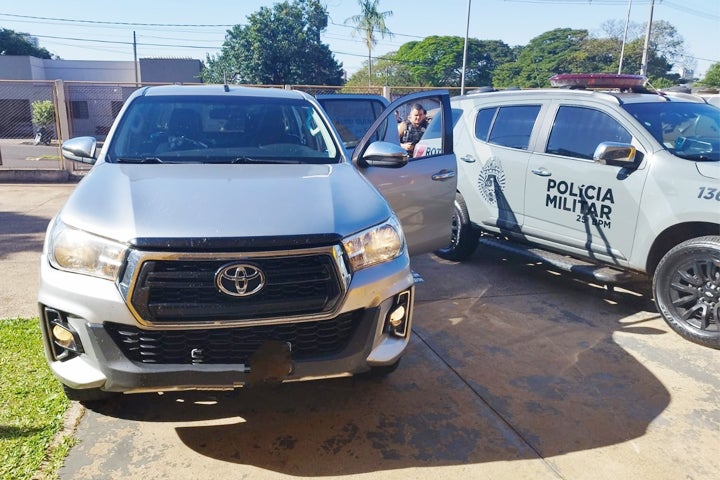 A Polícia Militar (PM) de Umuarama recuperou na tarde desta quinta-feira (17) uma caminhonete Toyota Hilux que havia sido furtada em março. O veículo estava carregado com cigarros de origem estrangeira, além de várias placas.