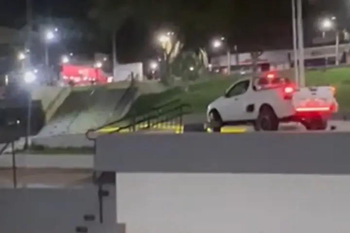 Um guarda patrimonial flagrou um veículo Montana dentro da Praça Santos em Umuarama. O fato foi registrado na madrugada do último domigo (13). O motorista do carro, um jovem, precisou manobrar diversas vezes para deixar o local após ser alertado que o acesso era probido.