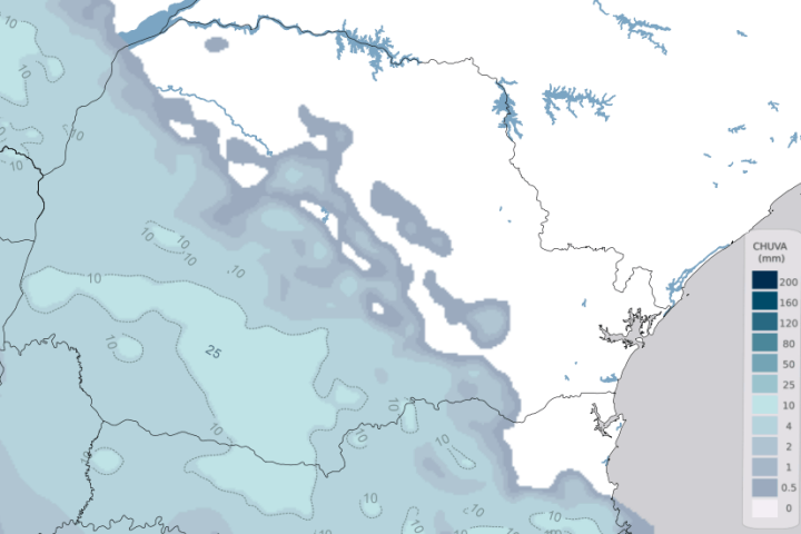 Nas regiões oeste e sudoeste, haverá melhora gradual das condições climáticas, com o sol aparecendo entre as nuvens. As temperaturas matinais serão amenas na metade sul do estado, e o aquecimento ao longo do dia será moderado em todas as regiões.