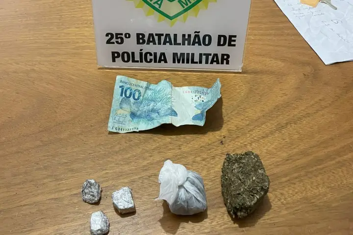 De acordo com a Polícia Militar, os militares haviam sido chamados para atender uma situação de violência doméstica e, ao chegar no endereço, visualizaram um rapaz na casa ao lado, que já é conhecido por tráfico de entorpecentes, jogando um papelote de alumínio em cima da residência.