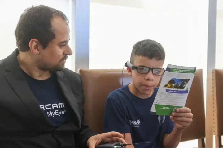 O governador Carlos Massa Ratinho Junior entregou a alunos da Rede Estadual de Ensino dispositivos de inteligência artificial OrCam MyEye 2.0 em evento realizado no Palácio Iguaçu, na manhã desta terça-feira (22). Desenvolvida e fabricada em Israel, a tecnologia, que usa áudio para transmitir informações a usuários com deficiência visual, promete transformar a experiência de aprendizado para estudantes com cegueira total nas escolas estaduais do Paraná.