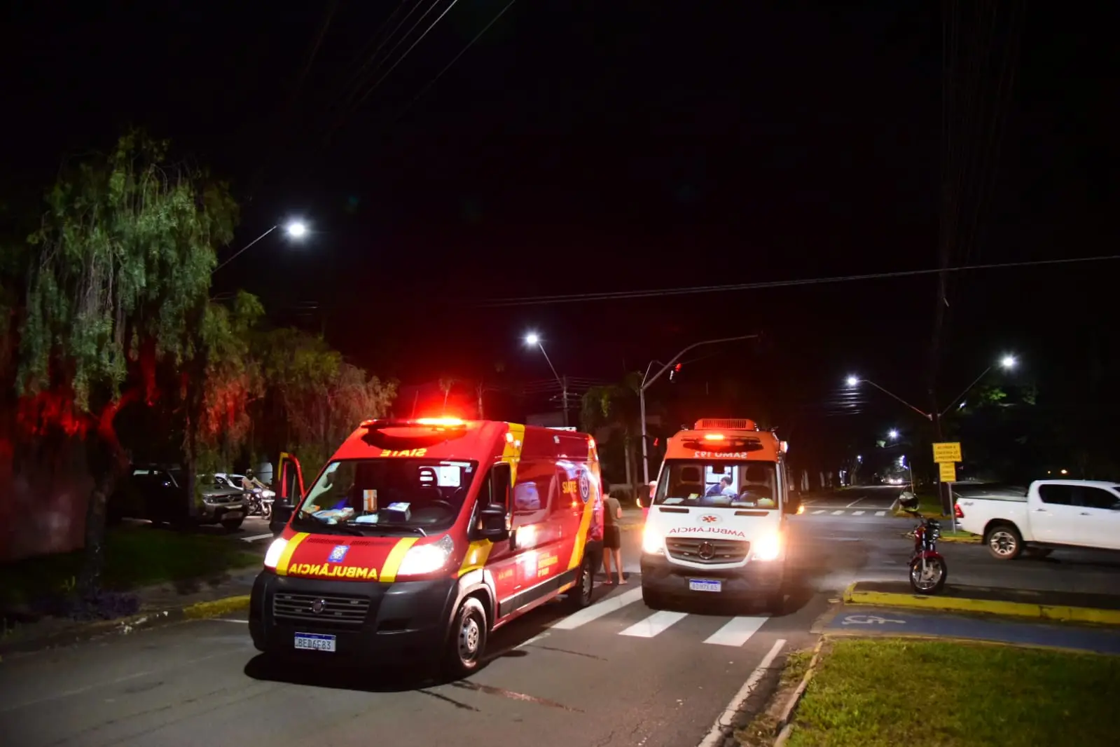 Um atropelamento com três pessoas feridas foi registrado no início da noite desta terça-feira (22) em Umuarama. O acidente envolveu uma motocicleta Honda Titan de cor vermelha e uma pedestre, no cruzamento das avenidas Apucarana e Ângelo Moreira da Fonseca.
