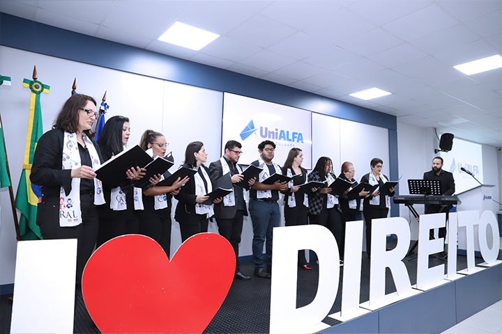 O coordenador do curso de Direito, Cleberson Cardoso de Oliveira fez as apresentações, deu um panorama dos temas que serão abordados pelos palestrantes e chamou o coral da OAB para uma apresentação.