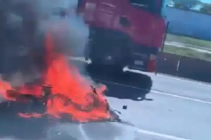Condutor sofre queimaduras após motocicleta ‘explodir’ ao colidir na traseira de carro