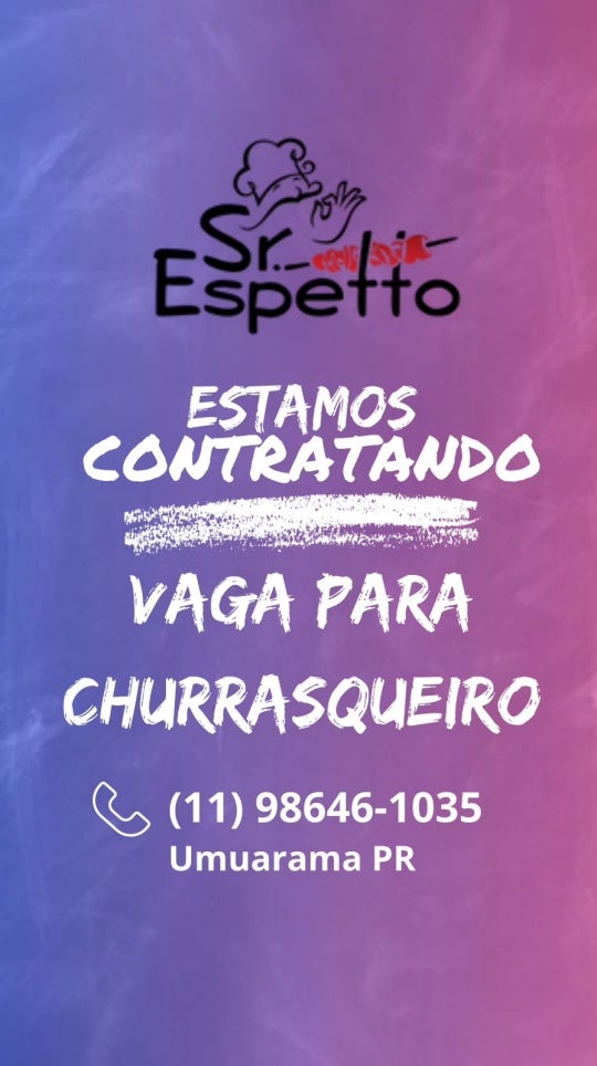 A filial do Sr. Spetto de Umuarama também divulgou, através das redes sociais, que está com uma vaga aberta para o cargo de churrasqueiro. Para se candidatar, basta entrar em contato com o número –atenção para o DDD – (11) 98646-1035.