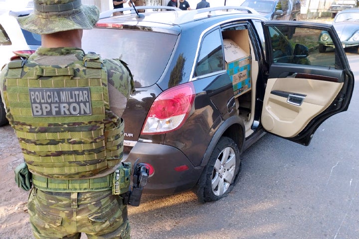 Foi informado que um suspeito trafegava com um automóvel Captiva pela região. Momentos depois a equipe do BPFron viu o carro de cor preta em alta velocidade e o condutor realizava ultrapassagem em local proibido.