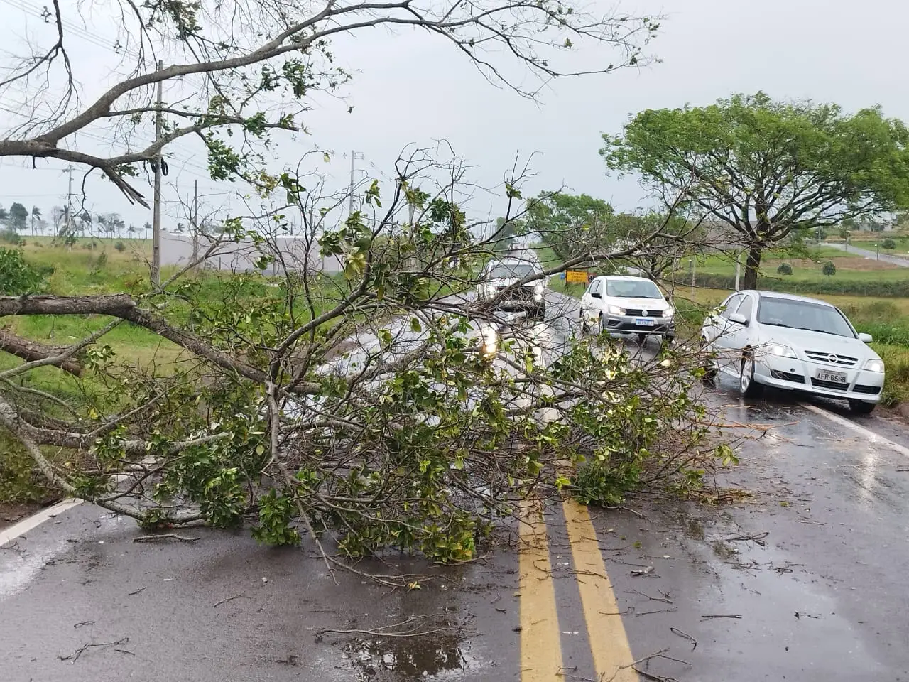Rapidamente uma máquina foi deslocada para retirar a árvore que estava obstruindo parte da pista e o tráfego voltou ao normal.