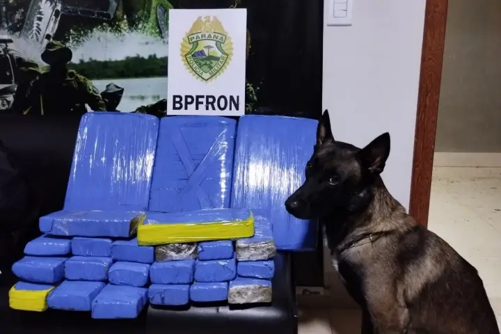 De acordo com o BPFron a abordagem – que faz parte da Operação Hórus – aconteceu por volta da 1h40. Durante a vistoria, o cão de faro “Nero” realizou buscas no compartimento de bagagens e indicou duas malas com entorpecentes.
