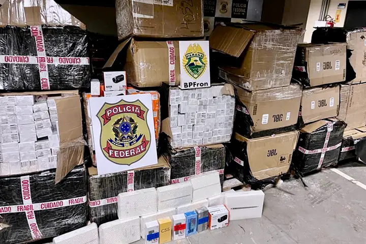 Durante a ação, foram encontrados no interior da residência 30 volumes de equipamentos eletrônicos de origem estrangeira, sendo aproximadamente 4.500 celulares Xiaomi 12, 150 câmeras filmadoras, oito Ipads e um McBook, bem como cerca de 30 perfumes e pouco mais de R$ 1.200 em espécie.