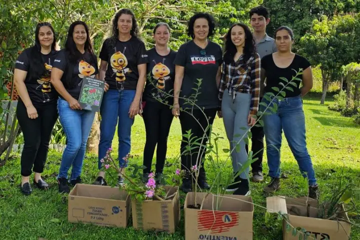 A entrega das mudas foi feita pela professora Ezilda Jacomassi e acadêmicos dos cursos de Farmácia e Engenharia Agronômica, durante uma visita da professora Juliana Módena e outras professoras do Cmei de Cafezal do Sul.