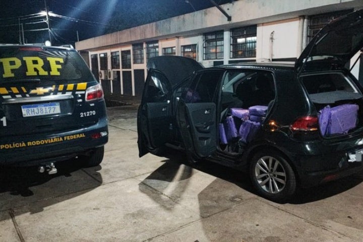 O veículo estava completamente carregado com fardos de maconha que, após a pesagem, totalizaram 447 quilos da droga. O carro tinha placas falsas e havia sido roubado em São Paulo/SP em outubro de 2022.