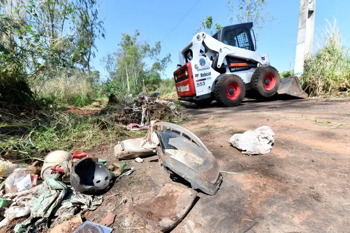 Com uma equipe de serviços braçais e o apoio de caminhões e de uma máquina minicarregadeira Bobcat, o serviço atendeu a parte mais baixa do bairro, onde havia maior acúmulo de resíduos, especialmente nas ruas Odete Brasiliana da Silva e projetada ‘P’.