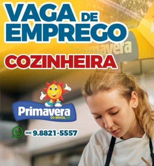 Interessadas na vaga de cozinheira devem entrar em contato pelo WhatsApp (44) 98821-5557; já para a vaga de garçonete pelo telefone (44) 99866-5934 e falar com Flávia.