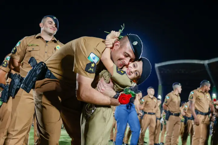 Em uma cerimônia acompanhada por familiares, amigos e novos colegas de farda no Estádio Willie Davids, em Maringá, 387 homens e mulheres tornaram-se na noite desta quinta-feira (14) novos soldados da Polícia Militar do Paraná (PMPR). A formatura, que contou com a participação do governador Carlos Massa Ratinho Junior, marca o reforço imediato do policiamento em 116 municípios de toda a região Noroeste e em partes das regiões Centro-Oeste e Norte do Estado.