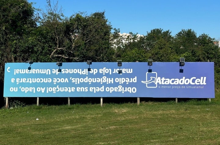 Outdoor invertido chama a atenção de quem passa pela avenida Paraná, em Umuarama