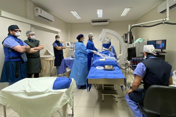 “O procedimento é pouco invasivo. Em vez de realizar uma cirurgia com corte no peito do paciente, utilizamos uma punção na veia da virilha, conhecida como veia femoral, para posicionar os cateteres dentro do coração. Dentro do órgão, esses cateteres conseguem mapear e localizar os pontos de arritmia, realizando testes para restaurar o ritmo cardíaco normal enquanto cauterizam os pontos que geram a arritmia no paciente”, explicou Silva.