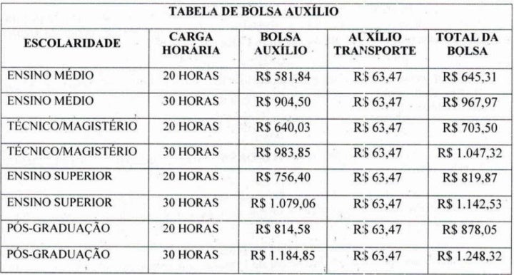 Na sequência os valores a serem pagos a ítulo de bolsa aos candidatos aprovados: