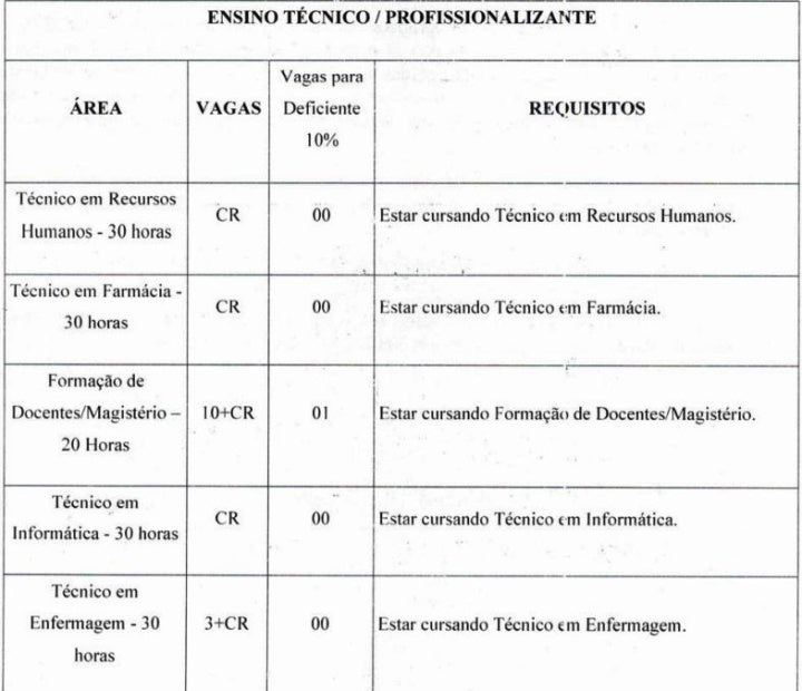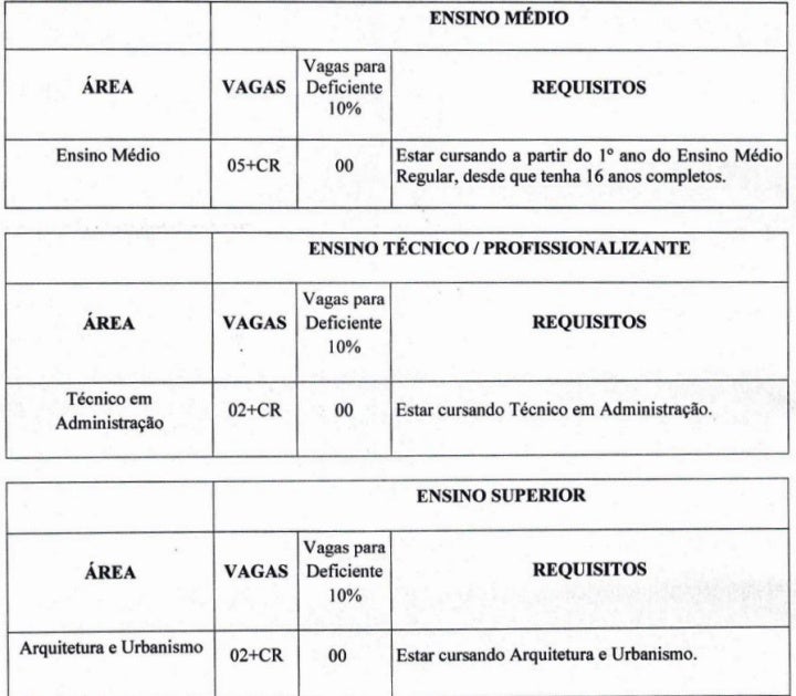 Abaixo as vagas incluídas pelo segundo edital: