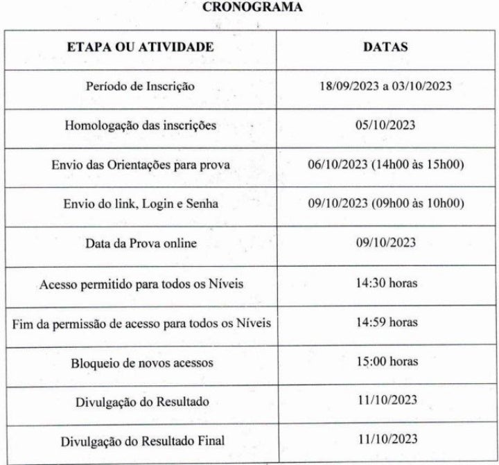 Confira o cronograma do processo seletivo: