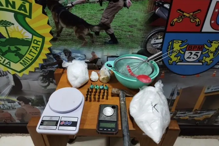 Um homem de 33 anos foi preso após a Polícia Militar (PM) encontrar cocaína, cartuchos calibre 9mm, equipamento para pesar e porcionar drogas e uma machadinha em sua residência no Dom Pedro I de Umuarama. A prisão aconteceu na noite desta segunda-feira (18) e a polícia investiga se ele não teria envolvimento com a morte de um comandante da Rotam (Rondas Ostensivas Táticas Metropolitanas) em um confronto armado em Cianorte.