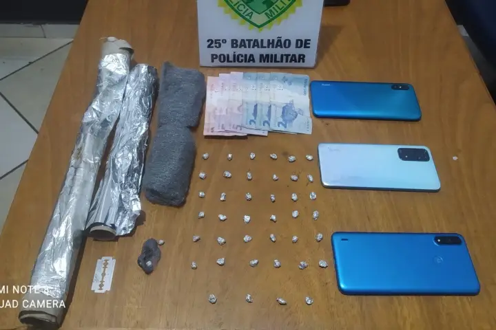 Dois adultos e um menor de idade foram encaminhados para a Delegacia de Polícia Civil de Umuarama sob suspeita de atividades referente ao tráfico de drogas e receptação no Parque 1º de Maio, em Umuarama. Eles foram detidos na noite desta quarta-feira (20), após a Polícia Militar (PM) flagrar o adolescente com uma motocicleta furtada entrando em uma residência que estava com 40 pedras de crack e outros materiais.